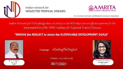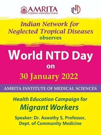 The Indian Network for Neglected Tropical Diseases (iNTD), Amrita Vishwa Vidyapeetham observed World NTD Day on January 30 by organizing a health education campaign for the Migrant labor community. It was held in collaboration with Uniting to Combat NTDs - UK.